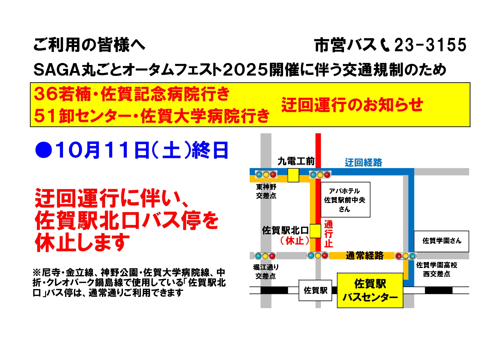 【10/11(土)】『SAGA丸ごとオータムフェスト2025』に伴う迂回運行のお知らせ